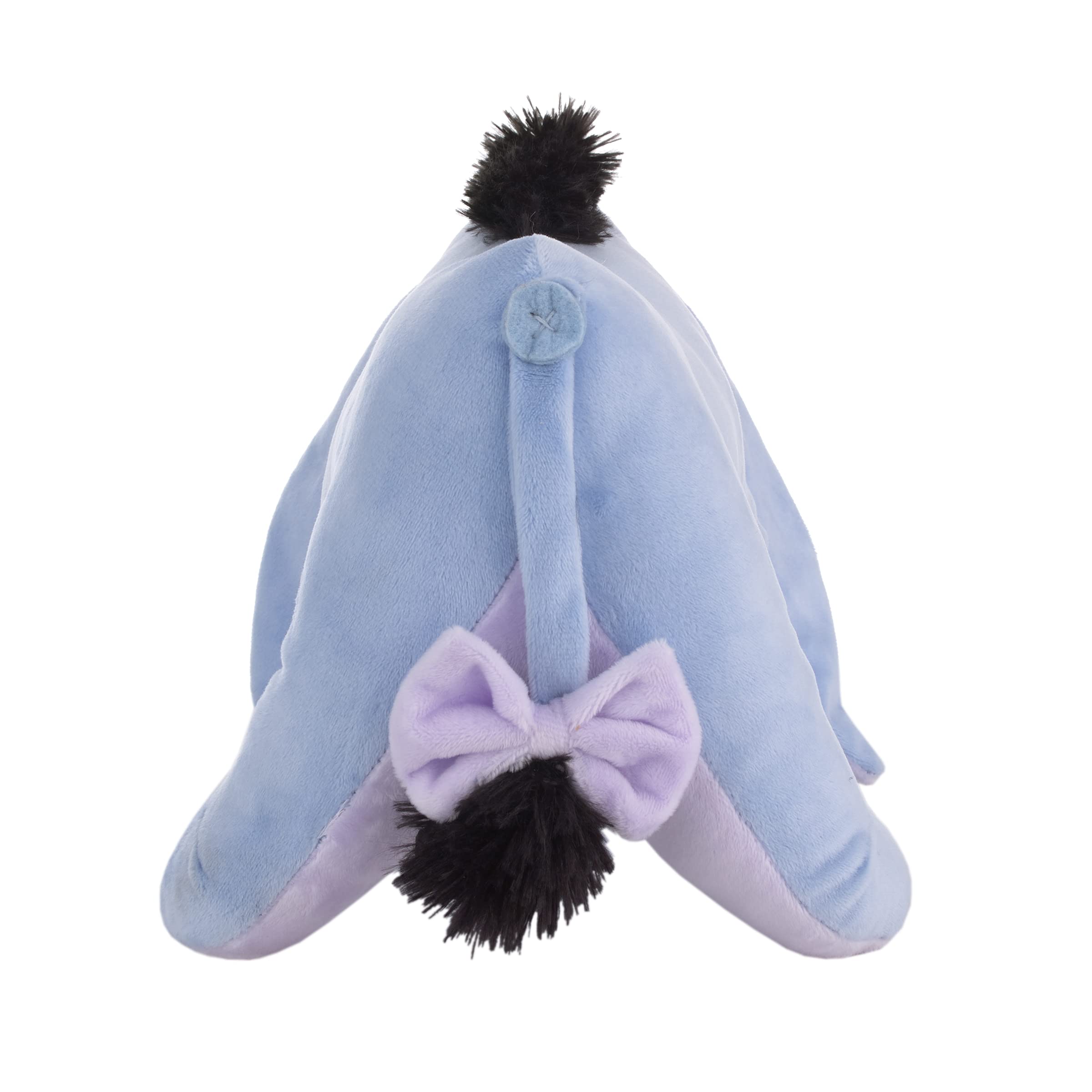 The Eeyore plush is featured in blue with a sweet smile and black mane and tail with a bow!