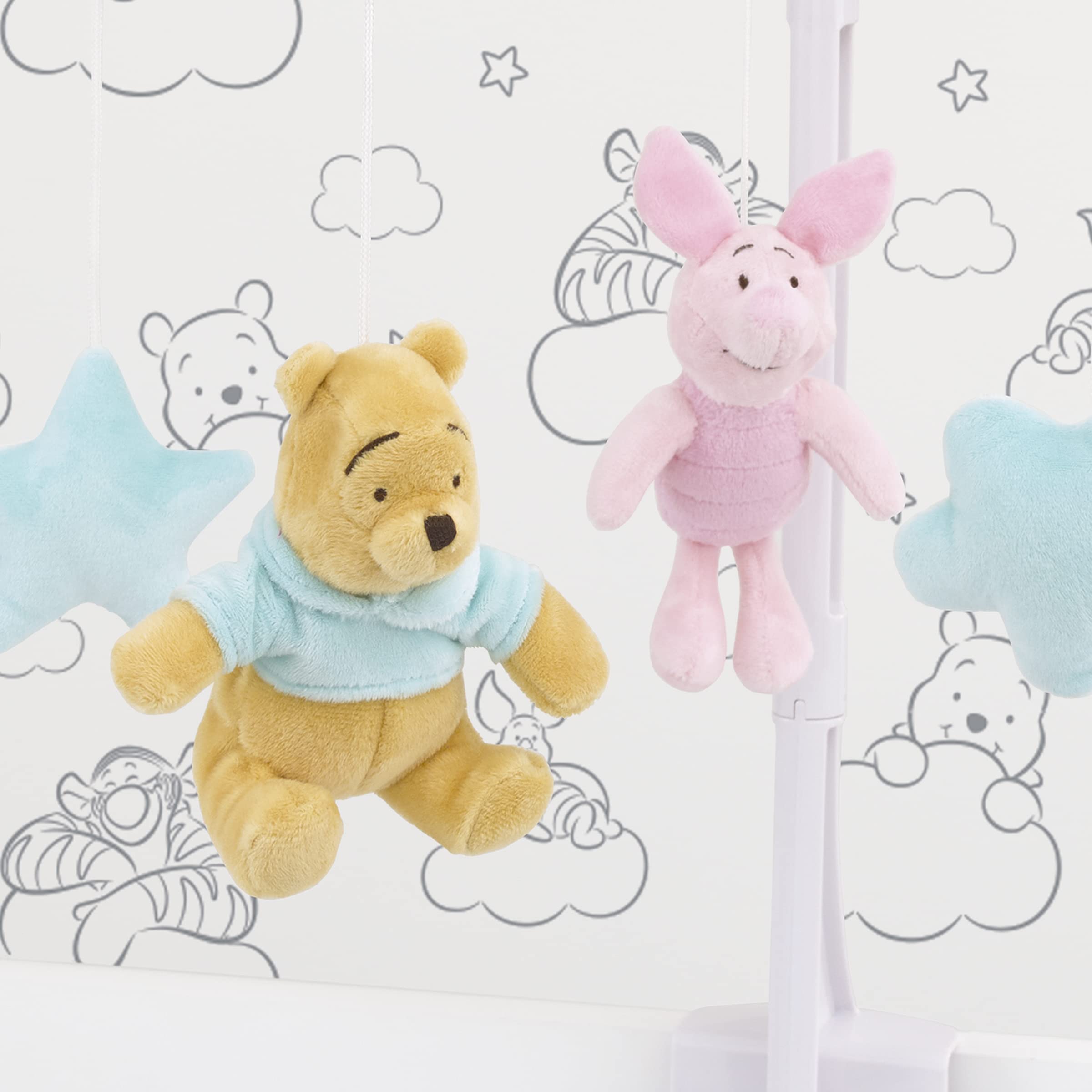 Disney Winnie The Pooh Hello Sunshine Nursery Musical Mobile with Plush Winnie The Pooh, Piglet & Aqua Cloud & Stars, Aqua, Yellow, Pink—