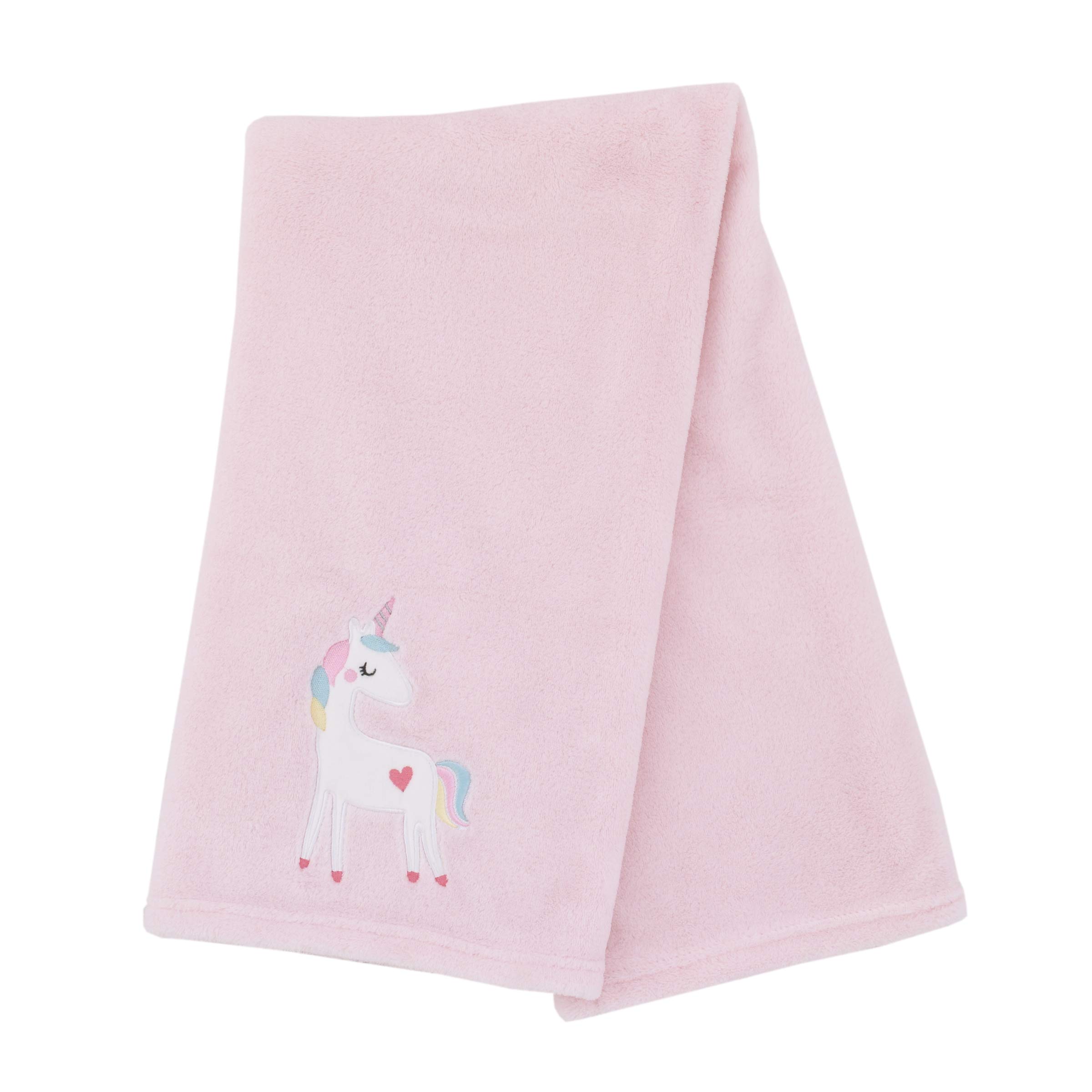 - Made of a soft pink coral fleece fabric with a cute Unicorn applique