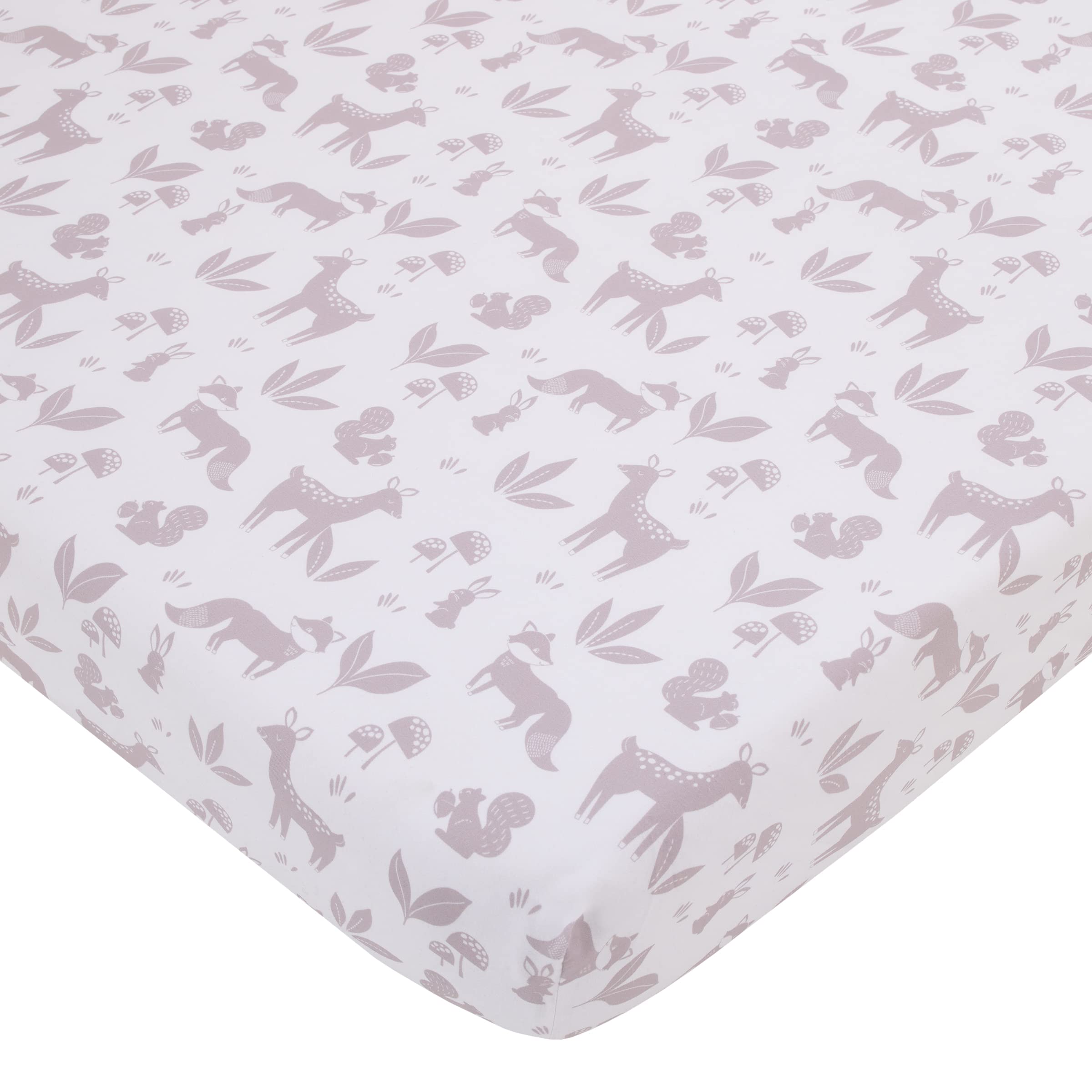 Little Love by NoJo Woodland Meadow Taupe, Sage, and White Deer, Fox, and Hedgehog 3 Piece Nursery Crib Bedding Set - Comforter, Fitted Crib Sheet and Crib Skirt