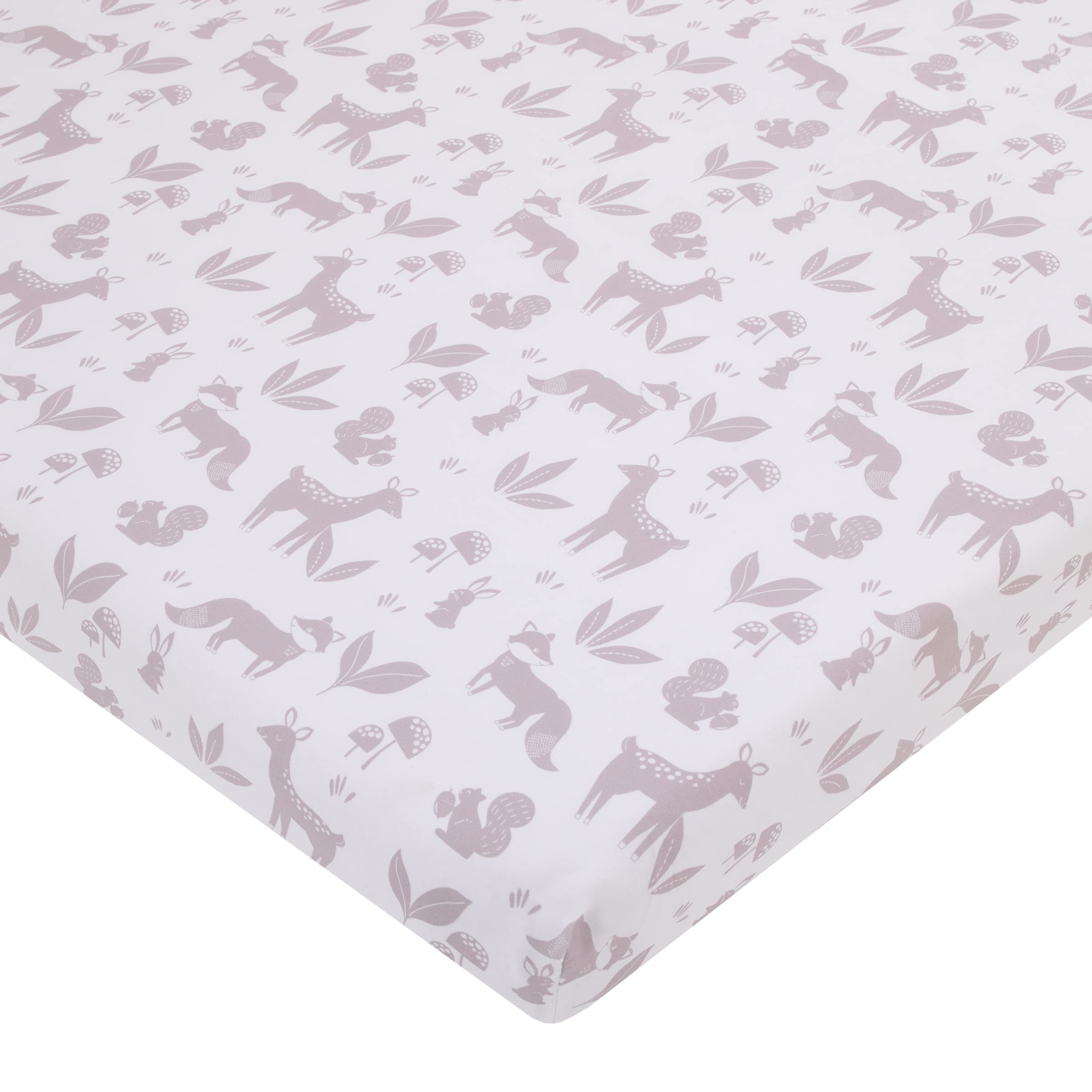 NoJo Little Love Woodland Meadow Taupe, Sage and White, Fox, Deer, and Hedgehog 3 Piece Nursery Mini Crib Bedding Set - Mini Comforter, and Two Fitted Mini Crib Sheets